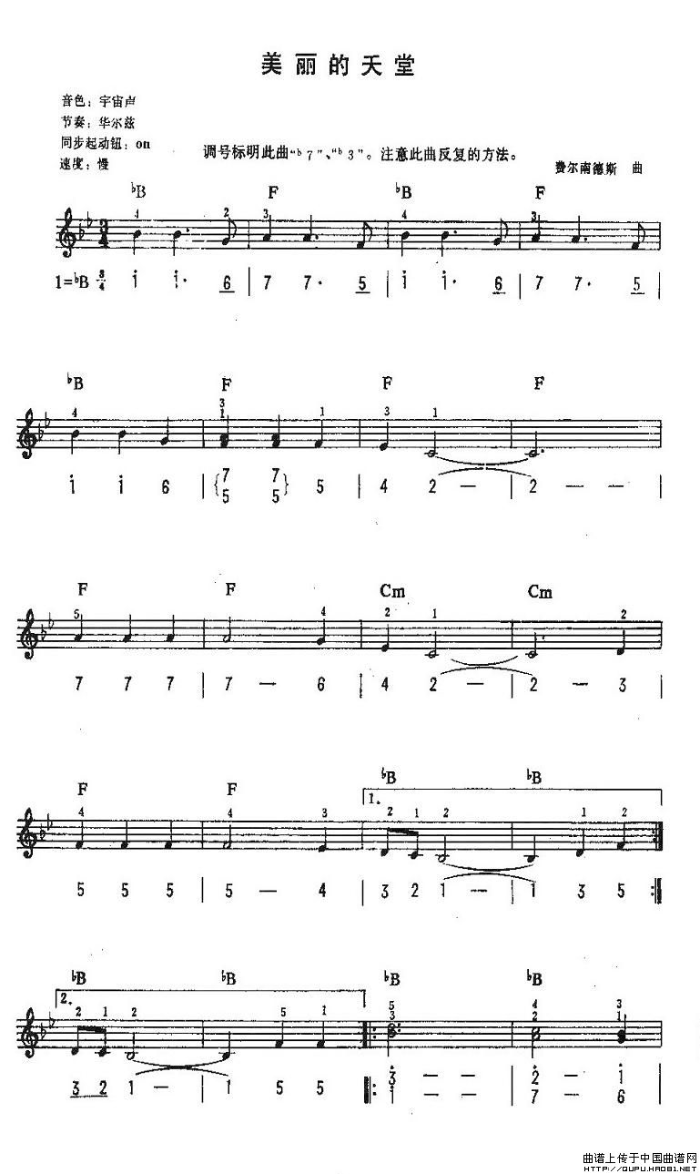 温馨提示:想要保存美丽的天堂,尽显美好意境曲谱?在曲谱图片上单击右键,选择"图片另存为...",即可将该曲谱保存到您的电脑本地,想要打印出来?将图片插入到WORD中,调整合适到大小打印即可。