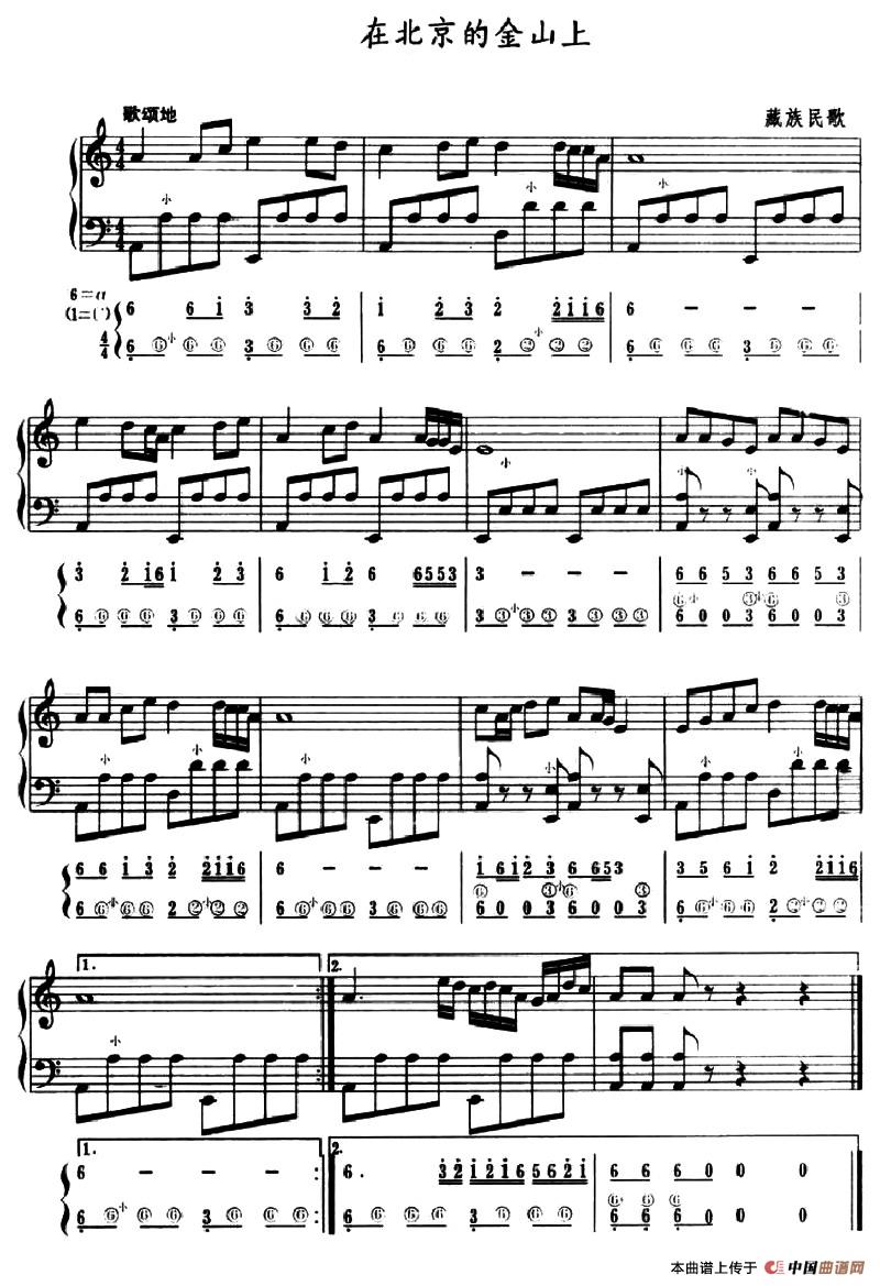 温馨提示:想要保存在北京的金山上手风琴简谱,经典红歌韵味足曲谱?在曲谱图片上单击右键,选择"图片另存为...",即可将该曲谱保存到您的电脑本地,想要打印出来?将图片插入到WORD中,调整合适到大小打印即可。
