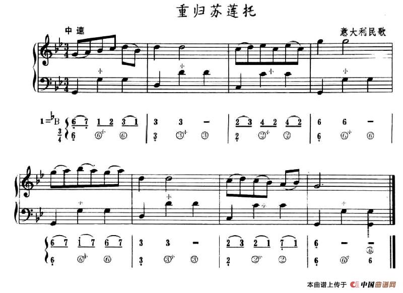 温馨提示:想要保存重归苏莲托(五线谱+简谱),感受意大利风情曲谱?在曲谱图片上单击右键,选择"图片另存为...",即可将该曲谱保存到您的电脑本地,想要打印出来?将图片插入到WORD中,调整合适到大小打印即可。