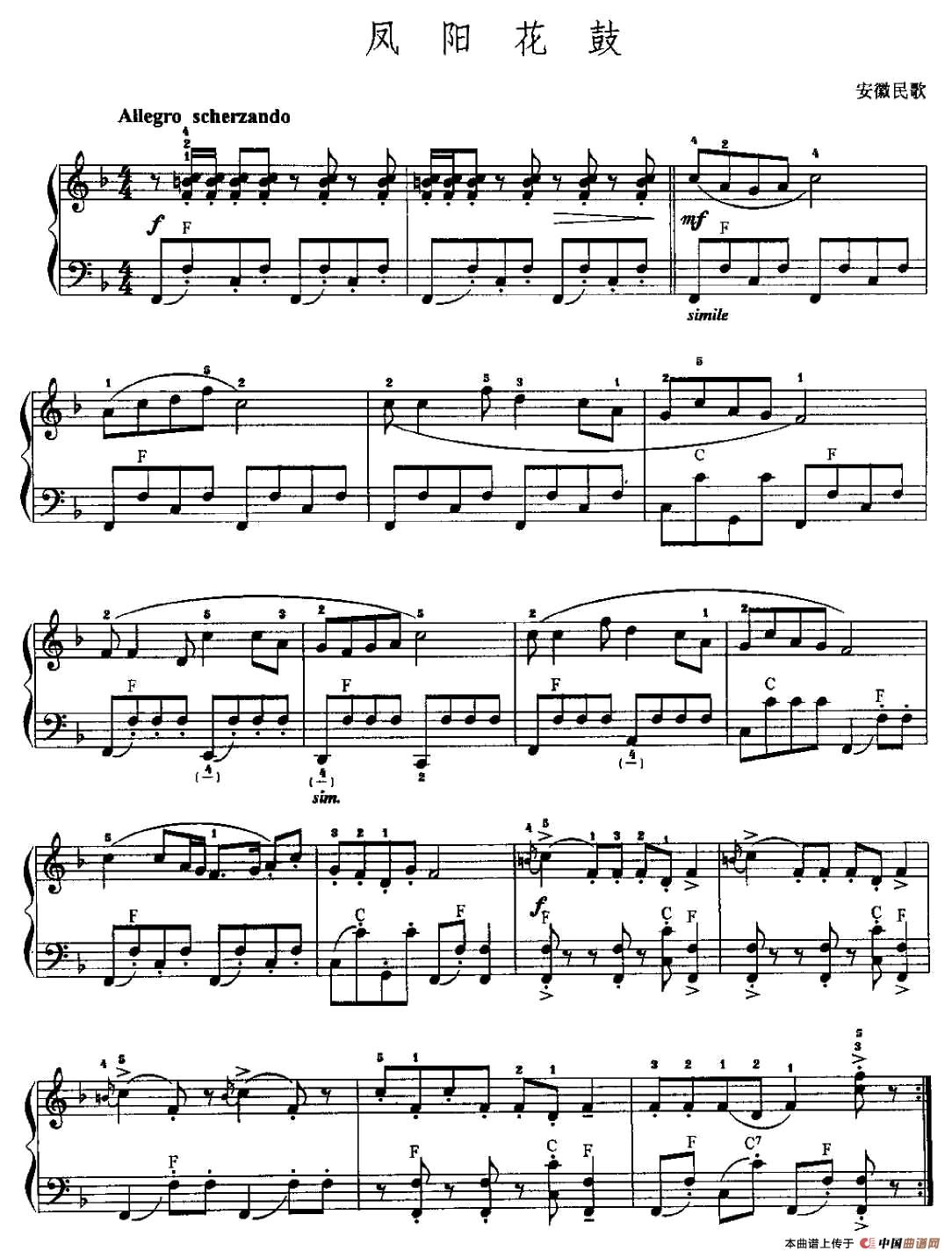 温馨提示:想要保存《凤阳花鼓》手风琴简谱,传统民歌韵味足曲谱?在曲谱图片上单击右键,选择"图片另存为...",即可将该曲谱保存到您的电脑本地,想要打印出来?将图片插入到WORD中,调整合适到大小打印即可。