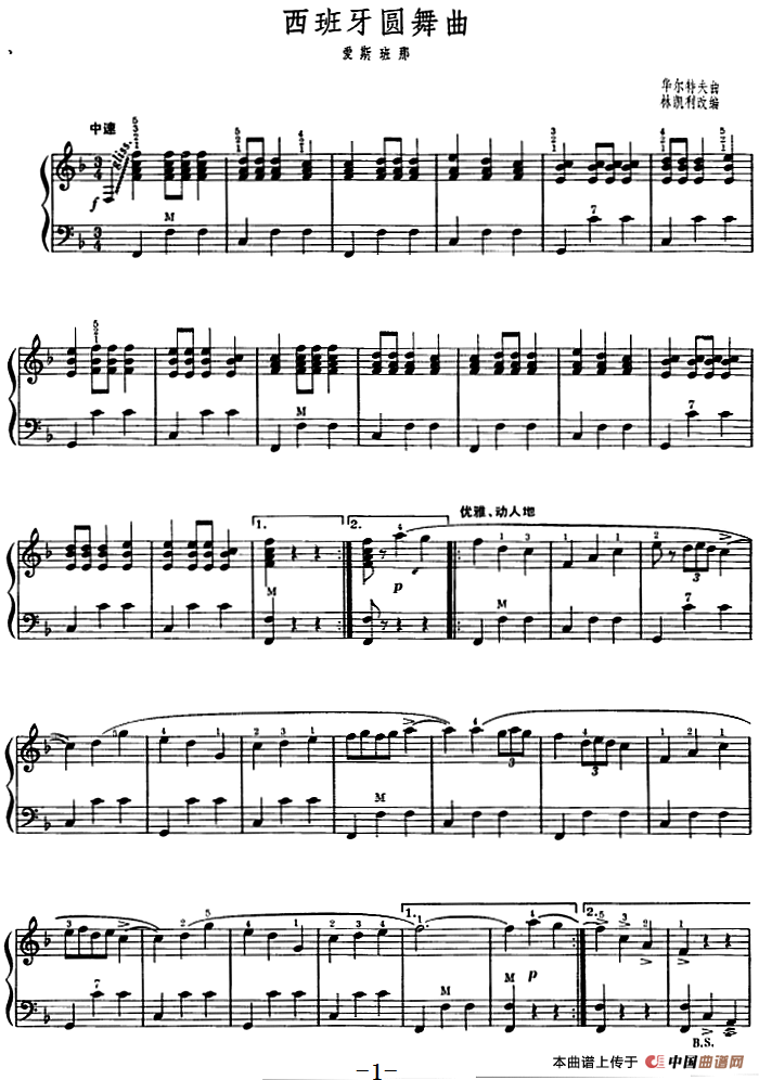 温馨提示:想要保存西班牙圆舞曲手风琴简谱,感受独特舞曲魅力曲谱?在曲谱图片上单击右键,选择"图片另存为...",即可将该曲谱保存到您的电脑本地,想要打印出来?将图片插入到WORD中,调整合适到大小打印即可。