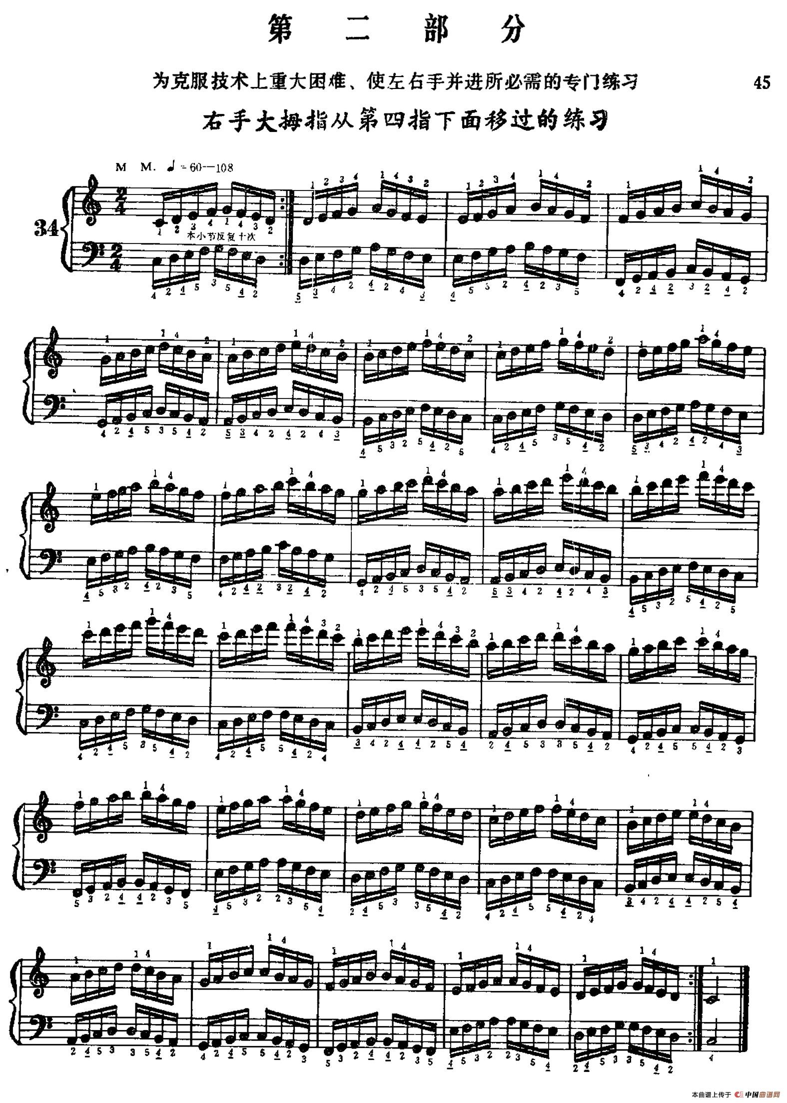 温馨提示:想要保存手风琴手指练习第二部分,右手拇指独特移指练曲谱?在曲谱图片上单击右键,选择"图片另存为...",即可将该曲谱保存到您的电脑本地,想要打印出来?将图片插入到WORD中,调整合适到大小打印即可。