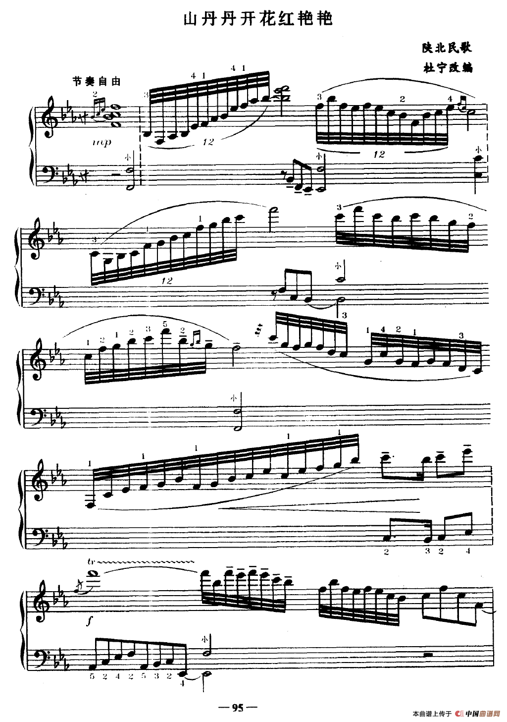 温馨提示:想要保存山丹丹开花红艳艳(杜宁改编版)手风琴简谱,展现别样陕北风情曲谱?在曲谱图片上单击右键,选择"图片另存为...",即可将该曲谱保存到您的电脑本地,想要打印出来?将图片插入到WORD中,调整合适到大小打印即可。
