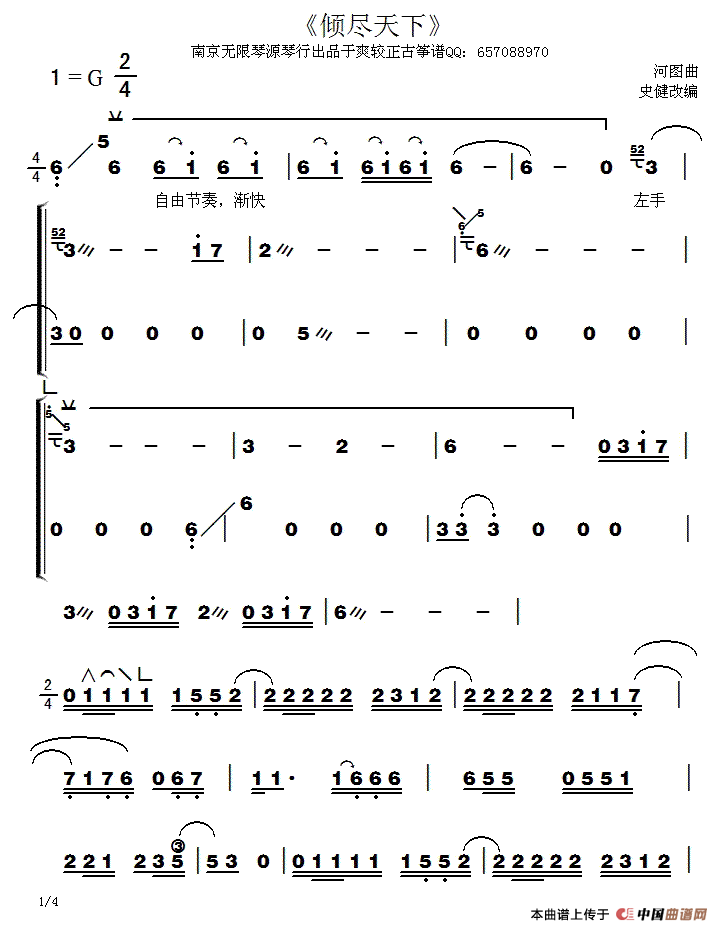 温馨提示:想要保存倾尽天下古筝古琴简谱,诉说乱世深情之意曲谱?在曲谱图片上单击右键,选择"图片另存为...",即可将该曲谱保存到您的电脑本地,想要打印出来?将图片插入到WORD中,调整合适到大小打印即可。