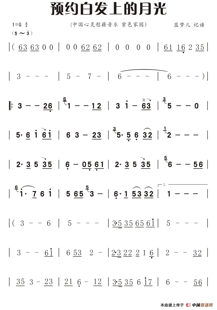 温馨提示:想要保存预约白发上的月光笛箫简谱, 寄托对月光的遐思曲谱?在曲谱图片上单击右键,选择"图片另存为...",即可将该曲谱保存到您的电脑本地,想要打印出来?将图片插入到WORD中,调整合适到大小打印即可。