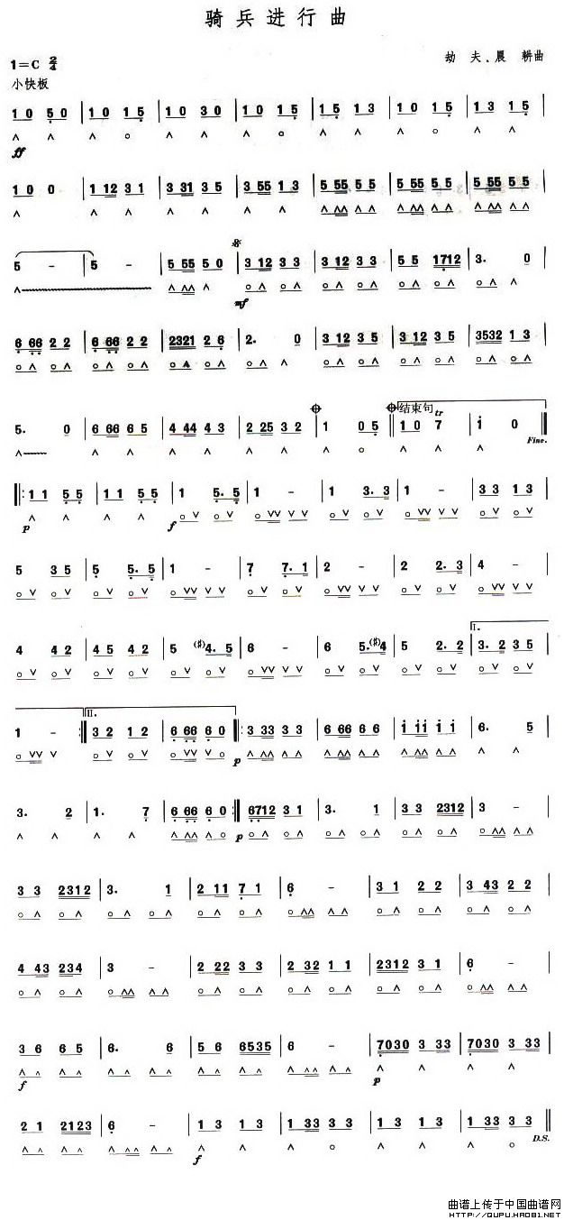 温馨提示:想要保存考级七级曲目:骑兵进行曲口琴简谱,展现骑兵豪迈气概曲谱?在曲谱图片上单击右键,选择"图片另存为...",即可将该曲谱保存到您的电脑本地,想要打印出来?将图片插入到WORD中,调整合适到大小打印即可。