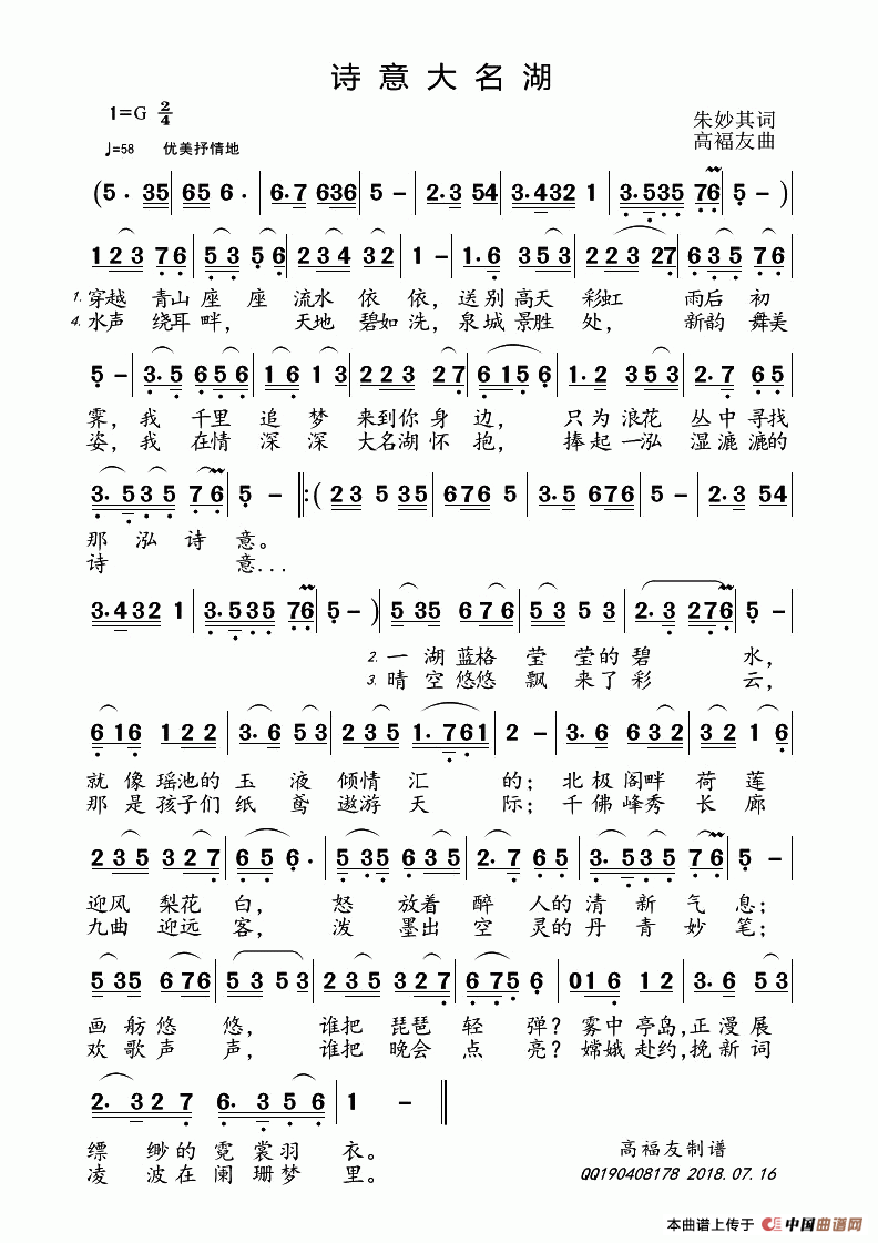 诗意大名湖曲谱是由作曲:高福友,上传:水鑫,版权归原作者所有。