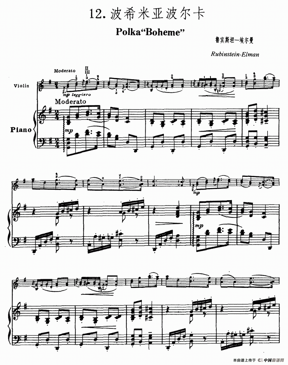温馨提示:想要保存波西米亚波尔卡提琴简谱,洋溢欢快活泼的氛围曲谱?在曲谱图片上单击右键,选择"图片另存为...",即可将该曲谱保存到您的电脑本地,想要打印出来?将图片插入到WORD中,调整合适到大小打印即可。
