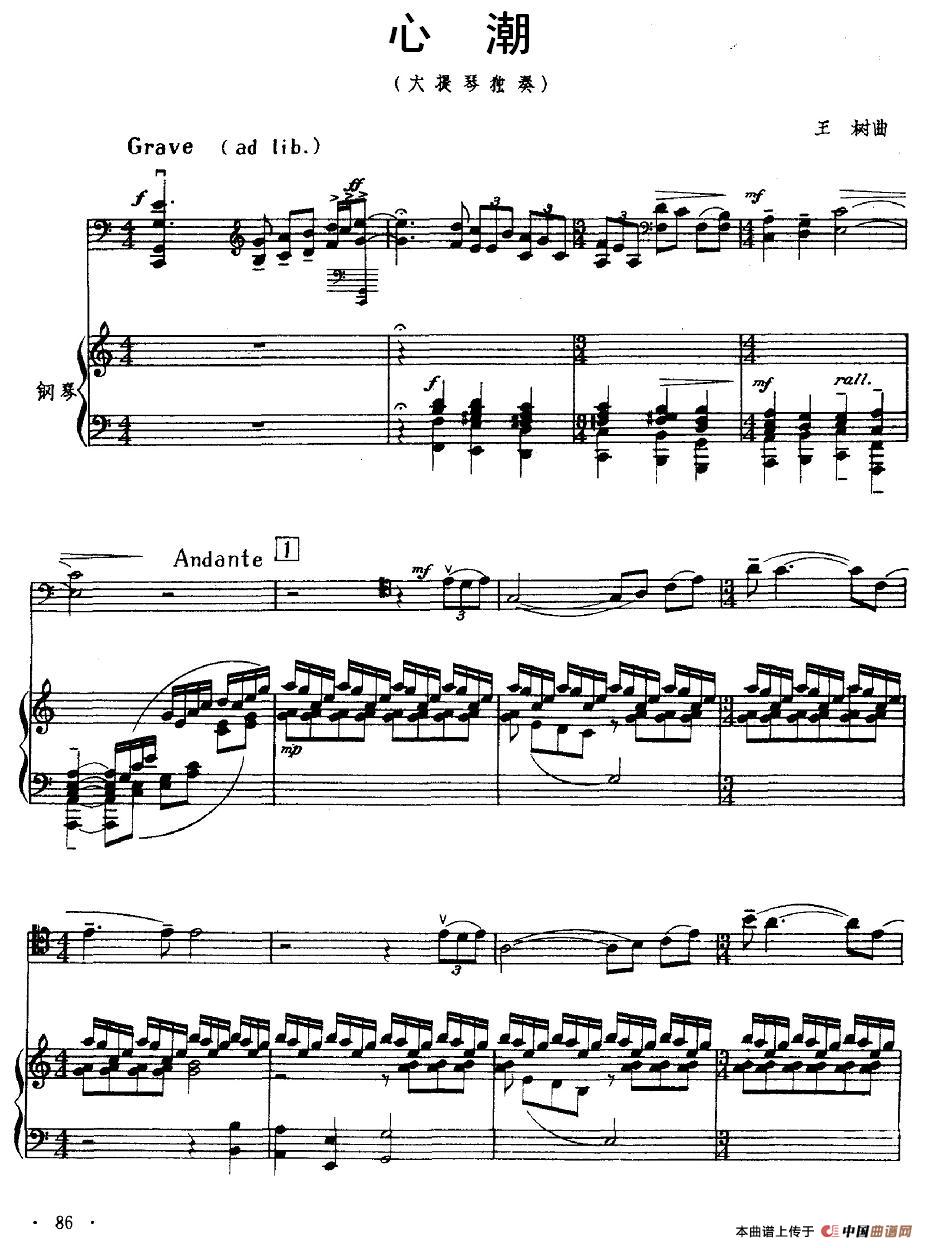 温馨提示:想要保存心潮(大提琴独奏+钢琴伴奏)提琴简谱,抒发内心澎湃情感曲谱?在曲谱图片上单击右键,选择"图片另存为...",即可将该曲谱保存到您的电脑本地,想要打印出来?将图片插入到WORD中,调整合适到大小打印即可。