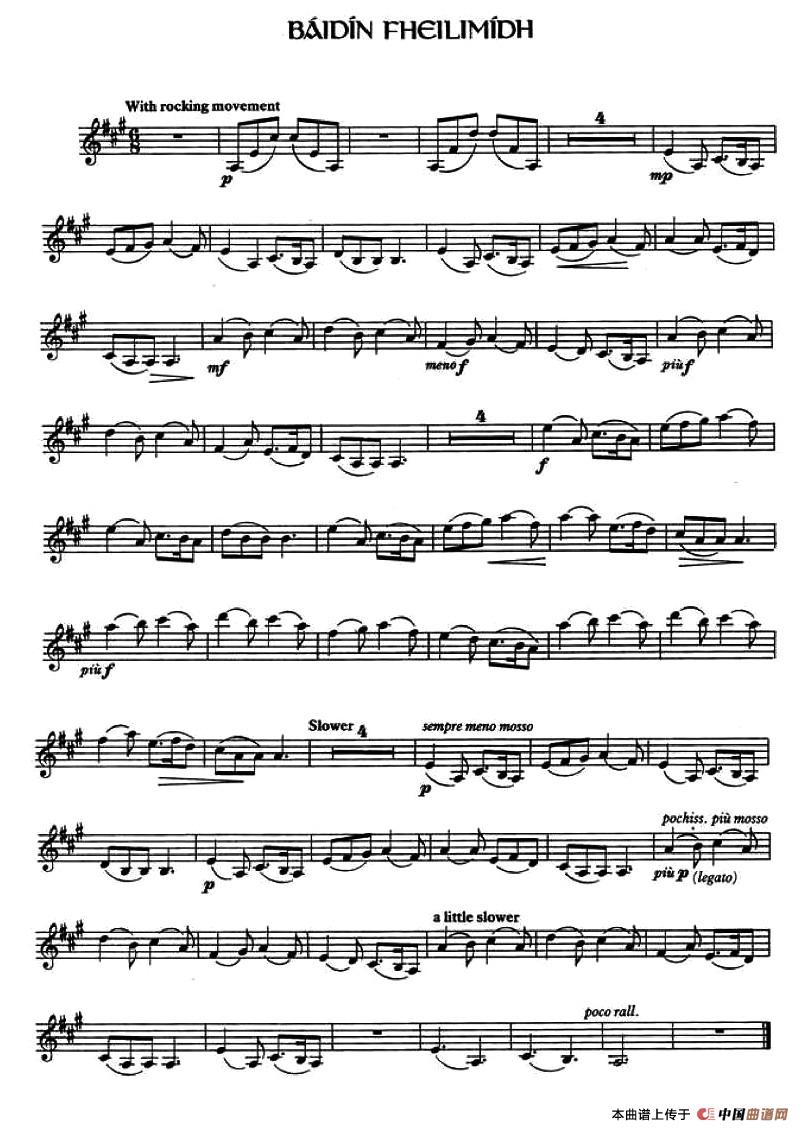 温馨提示:想要保存BaidinFheilimidh(爱尔兰曲调)提琴简谱,展现爱尔兰悠扬风情曲谱?在曲谱图片上单击右键,选择"图片另存为...",即可将该曲谱保存到您的电脑本地,想要打印出来?将图片插入到WORD中,调整合适到大小打印即可。