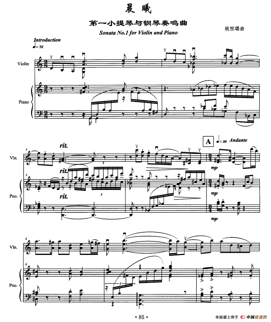 温馨提示:想要保存晨曦(第一小提琴与钢琴奏鸣曲)提琴简谱,描绘清晨希望之光曲谱?在曲谱图片上单击右键,选择"图片另存为...",即可将该曲谱保存到您的电脑本地,想要打印出来?将图片插入到WORD中,调整合适到大小打印即可。