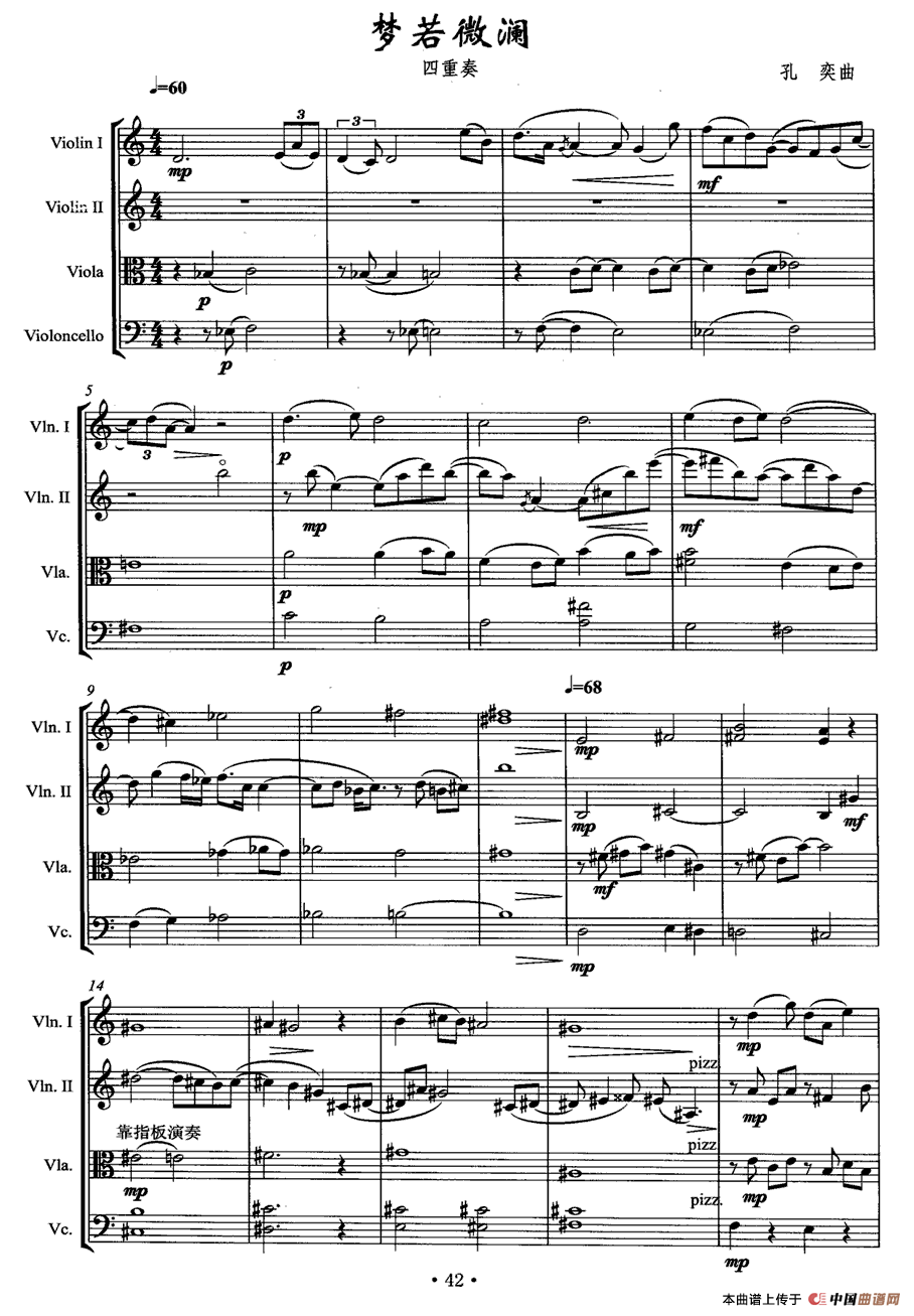 温馨提示:想要保存梦若微澜(四重奏)提琴简谱, 描绘梦幻静谧之境曲谱?在曲谱图片上单击右键,选择"图片另存为...",即可将该曲谱保存到您的电脑本地,想要打印出来?将图片插入到WORD中,调整合适到大小打印即可。