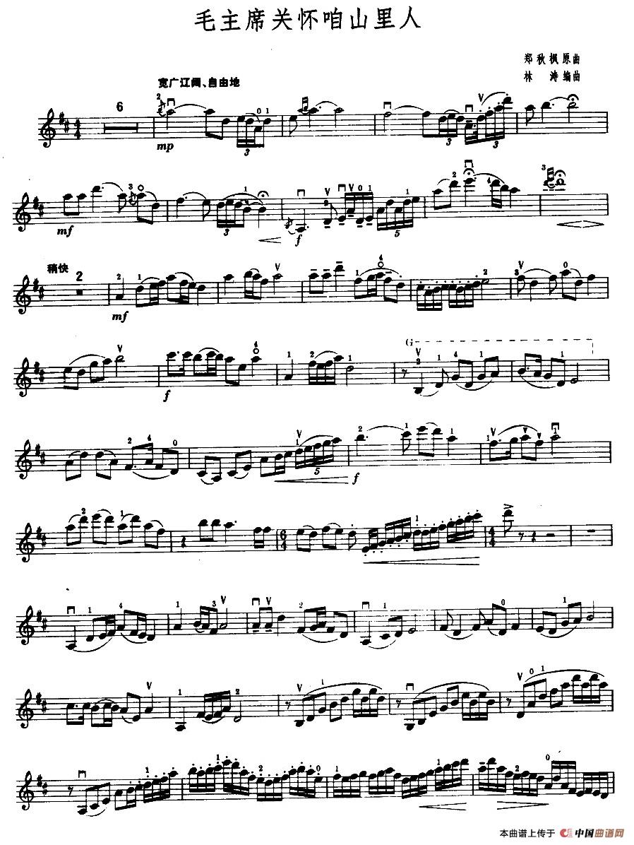 温馨提示:想要保存毛主席关怀山里人提琴简谱, 传递领袖深情厚谊曲谱?在曲谱图片上单击右键,选择"图片另存为...",即可将该曲谱保存到您的电脑本地,想要打印出来?将图片插入到WORD中,调整合适到大小打印即可。