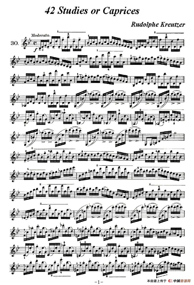 温馨提示:想要保存42首练习曲或隨想曲之30提琴简谱,展现音乐灵动之美曲谱?在曲谱图片上单击右键,选择"图片另存为...",即可将该曲谱保存到您的电脑本地,想要打印出来?将图片插入到WORD中,调整合适到大小打印即可。