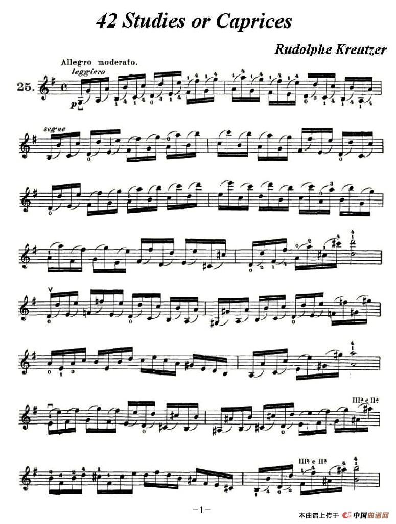 温馨提示:想要保存42首练习曲或隨想曲之25提琴简谱,展现灵动音乐意境曲谱?在曲谱图片上单击右键,选择"图片另存为...",即可将该曲谱保存到您的电脑本地,想要打印出来?将图片插入到WORD中,调整合适到大小打印即可。