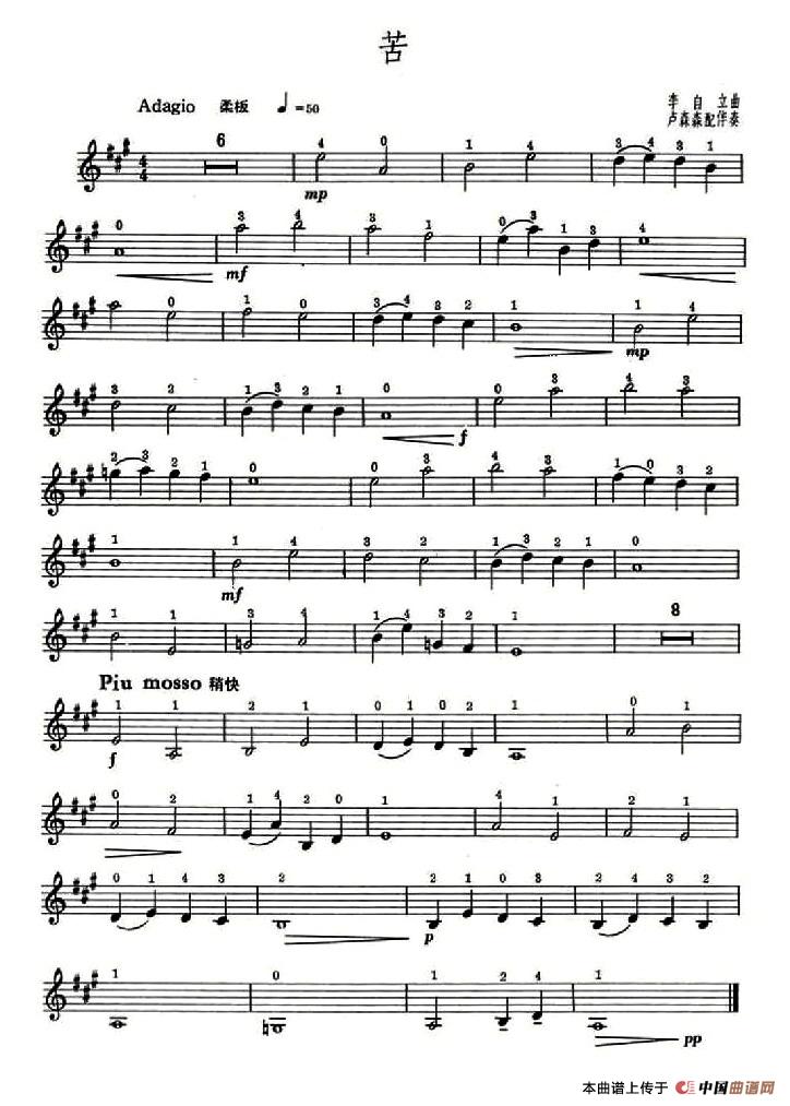 温馨提示:想要保存苦提琴简谱,诉说苦涩的情感曲谱?在曲谱图片上单击右键,选择"图片另存为...",即可将该曲谱保存到您的电脑本地,想要打印出来?将图片插入到WORD中,调整合适到大小打印即可。