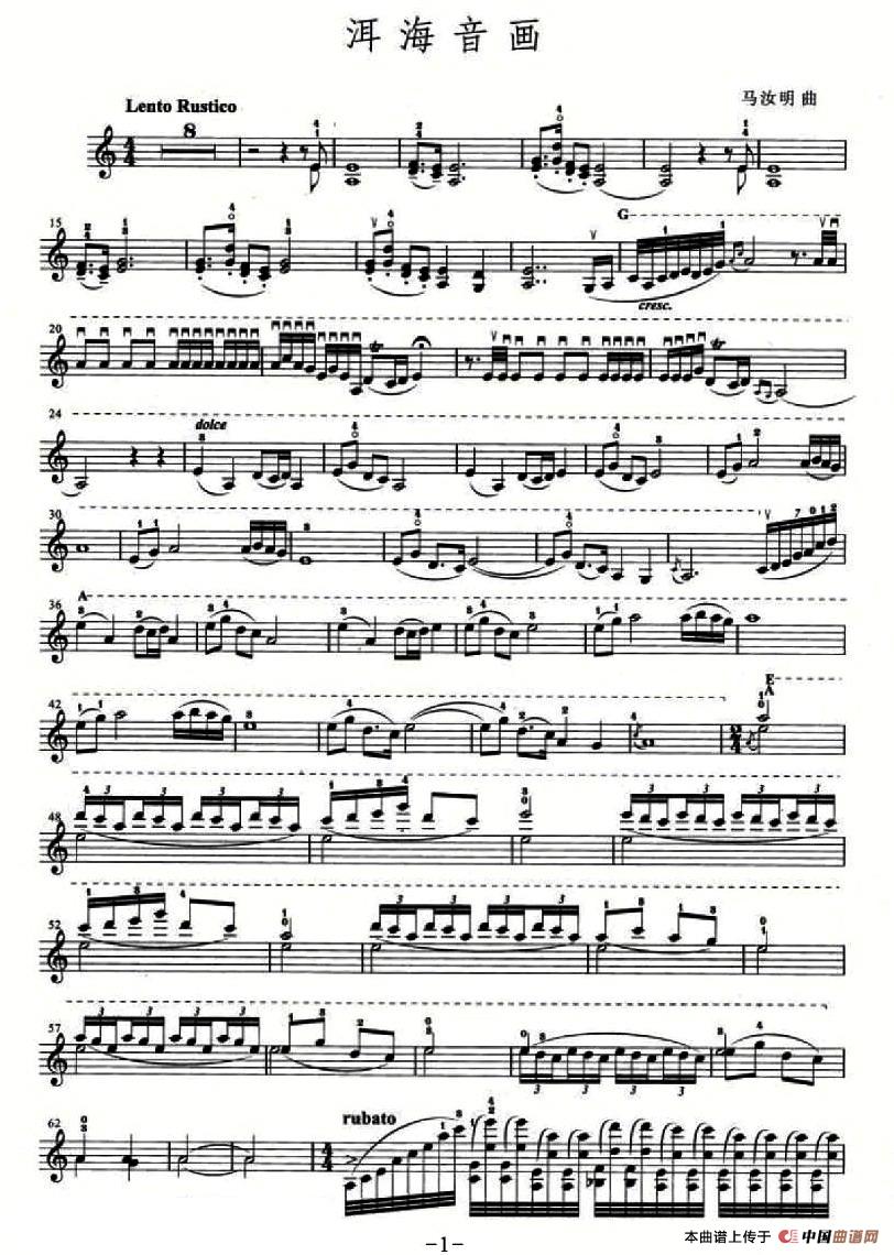 温馨提示:想要保存洱海音画提琴简谱,描绘洱海宁静之美曲谱?在曲谱图片上单击右键,选择"图片另存为...",即可将该曲谱保存到您的电脑本地,想要打印出来?将图片插入到WORD中,调整合适到大小打印即可。