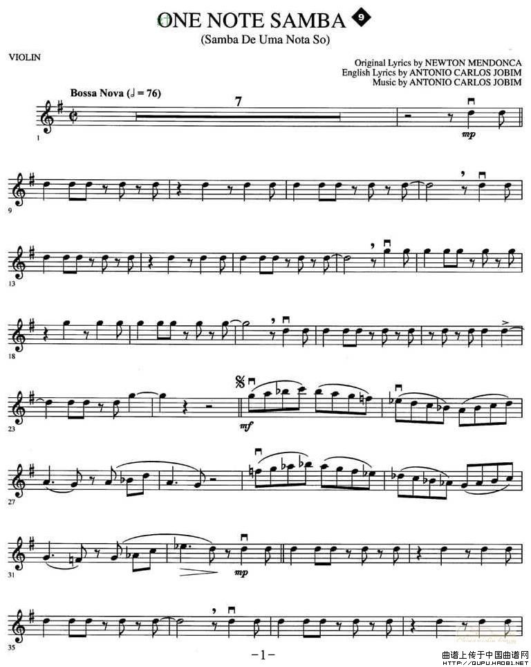 温馨提示:想要保存ONENOTESAMBA提琴简谱, 传递热情动感旋律曲谱?在曲谱图片上单击右键,选择"图片另存为...",即可将该曲谱保存到您的电脑本地,想要打印出来?将图片插入到WORD中,调整合适到大小打印即可。
